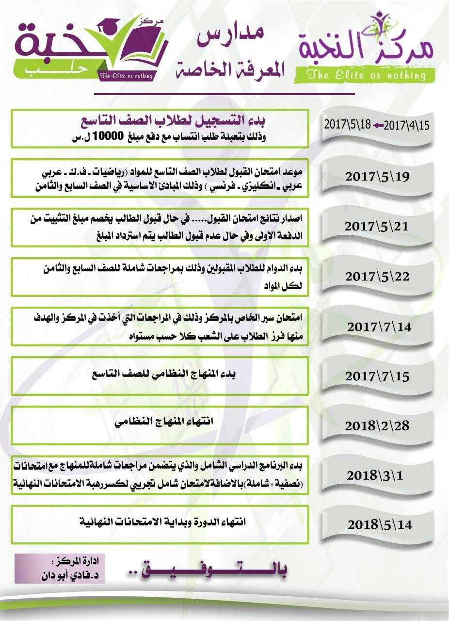اعلان تسجيل طلاب التاسع 2018 1/2